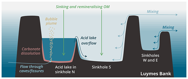 Humphreys, M. P., Meesters, E. H., de Haas, H., Karancz, S., Delaigue, L., Bakker, K., … van Duyl, F. C. (2022). Dissolution of a submarine carbonate platform by a submerged lake of acidic seawater. Biogeosciences, 19, 347–358. https://doi.org/10.5194/bg-19-347-2022